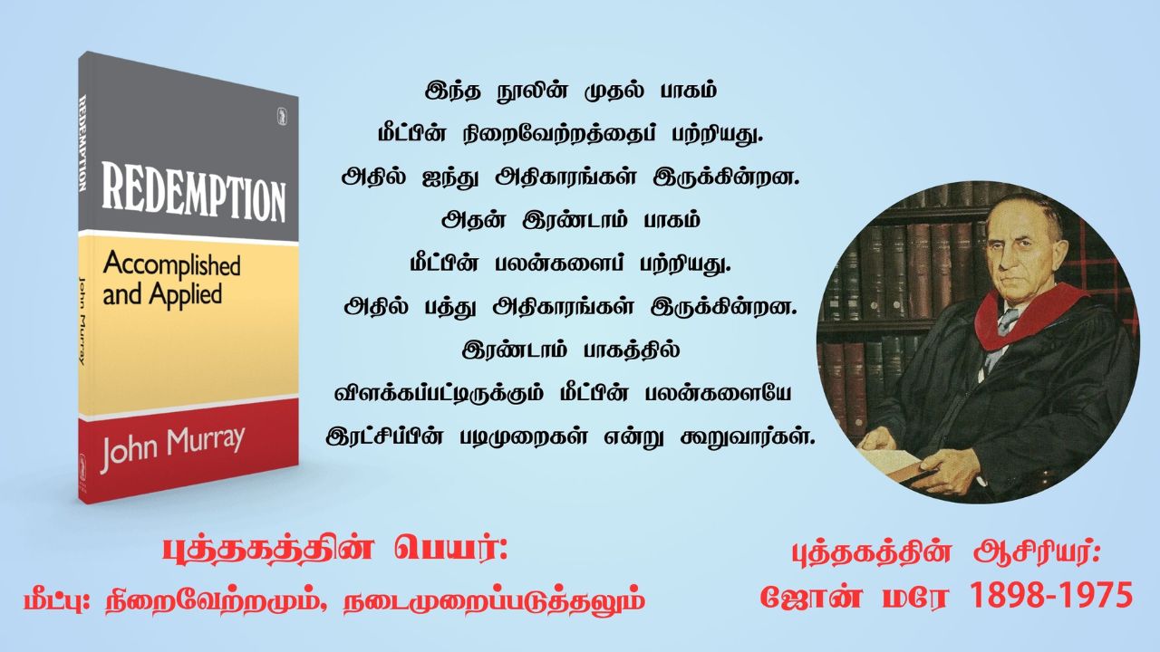 பேராசிரியர் ஜோன் மரே ஸ்கொட்லாந்து நாட்டைச் சேர்ந்தவர். பல வருடங்களாக அமெரிக்காவில் வெஸ்ட்மின்ஸ்டர் இறையியல் கல்லூரியில் வரையறுக்கப்பட்ட இறையியல் (Systematic Theology) பாடத்தைக் கற்றுக்கொடுத்தவர். அவரெழுதிய நூல்களில் ஒன்றுதான் Redemption: Accomplished and Applied. இந்த ஆங்கில நூலை நான் பல தடவைகள் வாசித்திருக்கிறேன். இன்றைக்கும் அதன் பக்கங்களை நான் அவசியமானபோது திறக்கமாலிருந்ததில்லை.