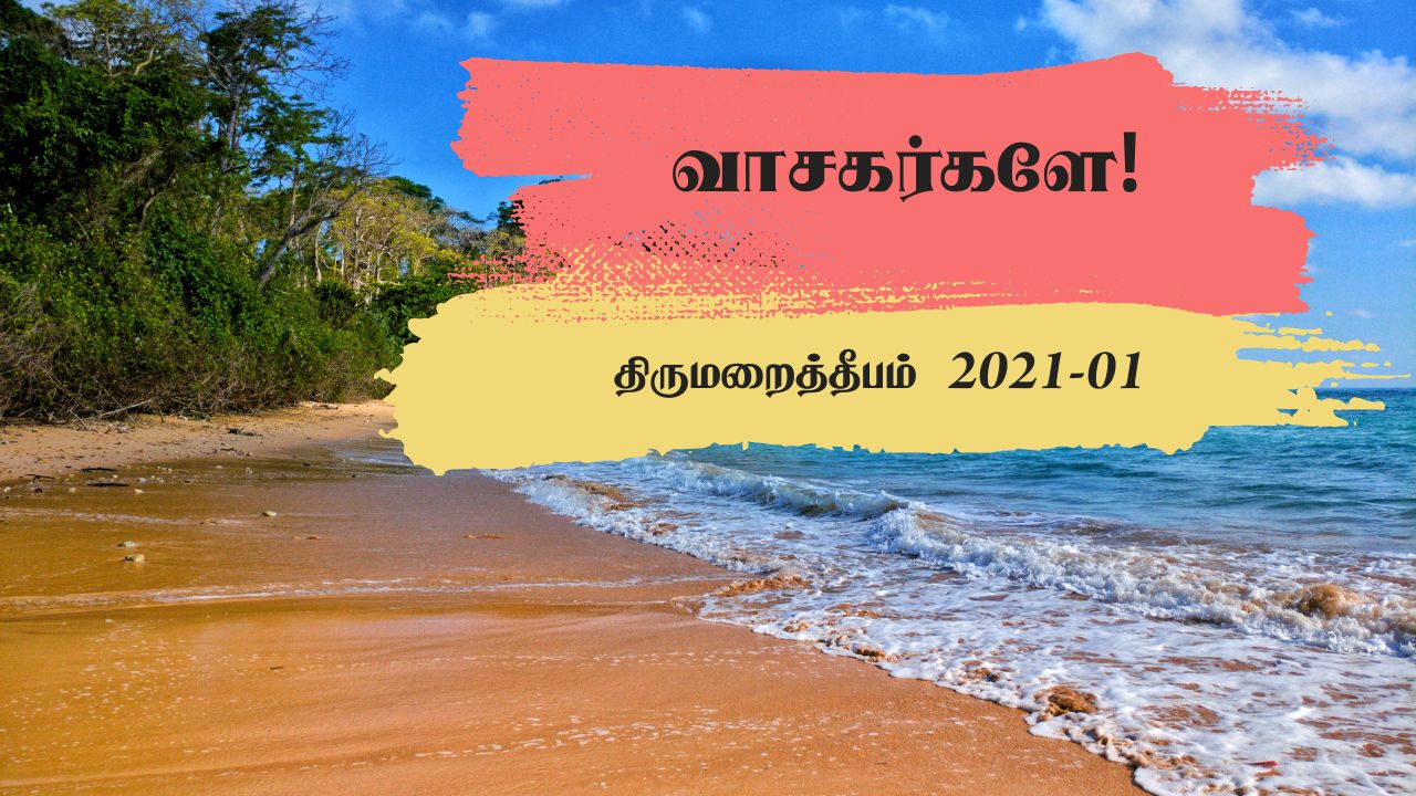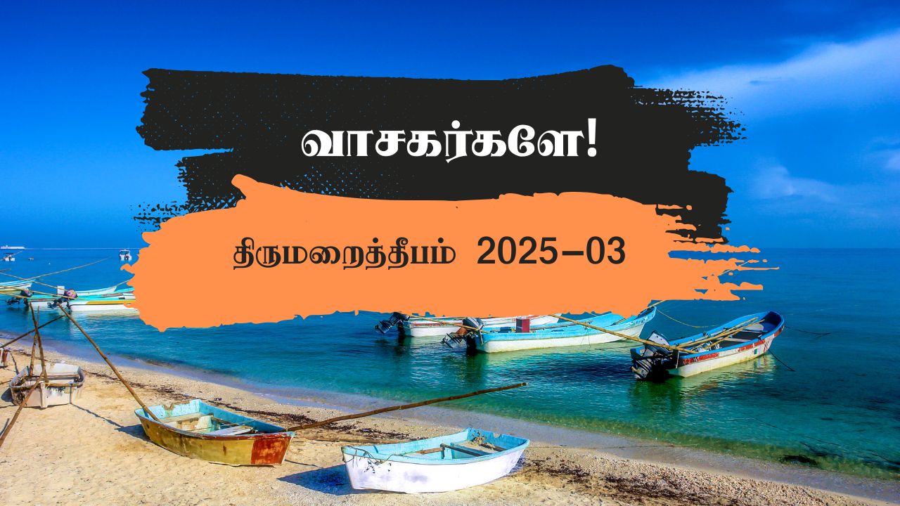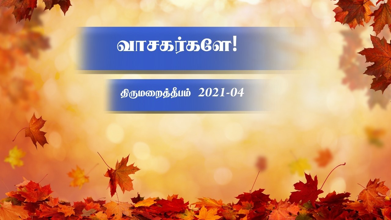 வணக்கம் வாசகர்களே! தொடர்ந்தும் திருமறைத்தீபம் உங்களுக்குப் பயனுள்ளதாக இருந்து வருகிறது என்று நம்புகிறேன். கோவிட்&19 தொடர்ந்து உலகத்தை மாற்றி அமைத்துக்கொண்டிருக்கும்